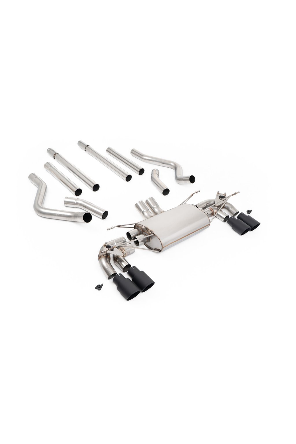 Cat Back Valved System with Quad GT-90 Cerakote Black Trims - Non Resonated (Louder)