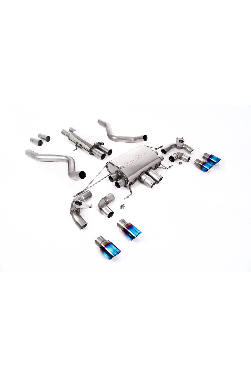 OPF/GPF Back Resonated Valved System with Quad GT-90 Burnt/Blue Titanium Trims - ECE Approved