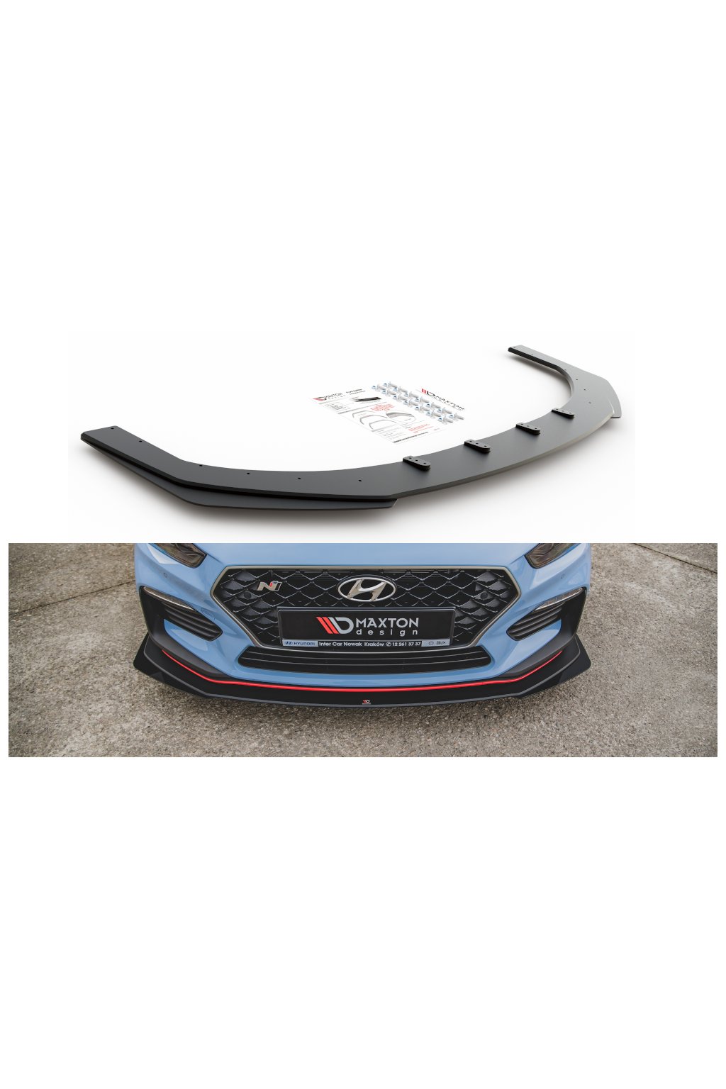 Maxton Design "Racing durability" spoiler pod přední nárazník s rohovými splittery pro vozidlo Hyundai i30 N Mk3 . Povrchová úprava spoileru černý lesklý plast ABS.
