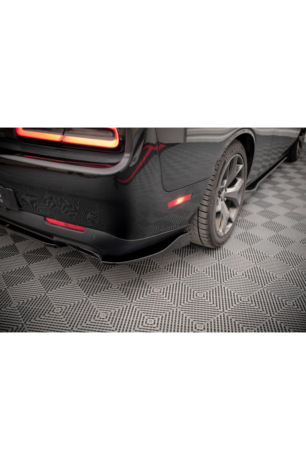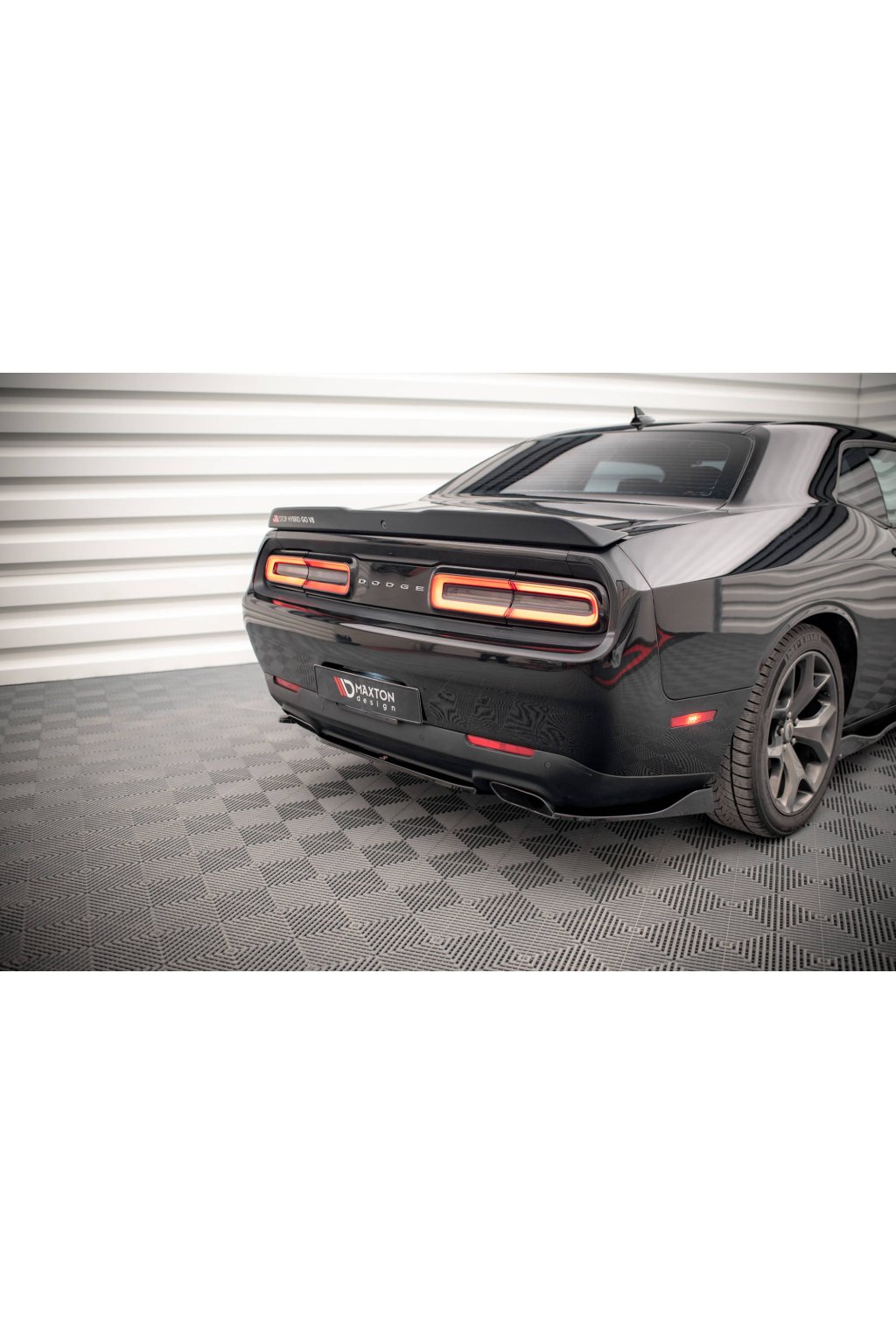 Maxton Design boční difuzory pod zadní nárazník pro vozidlo Dodge Challenger Mk3 RT Facelift . Povrchová úprava spoileru černý lesklý plast ABS.