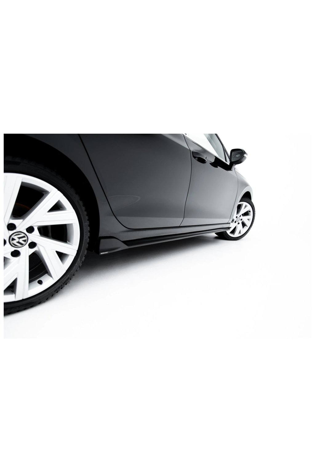 Maxton Design difuzory pod boční prahy pro vozidlo Volkswagen Golf Mk8 Facelift . Povrchová úprava spoileru černý lesklý plast ABS.