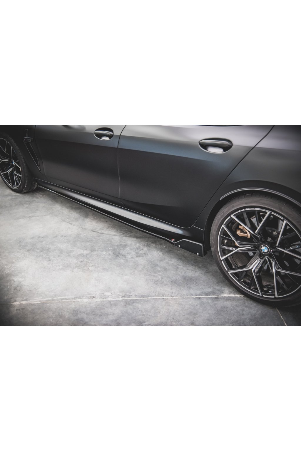 Maxton Design difuzory pod boční prahy s křidélky ver.1 pro vozidlo BMW M8 Gran Coupe/F93 . Povrchová úprava spoileru černý lesklý plast ABS.