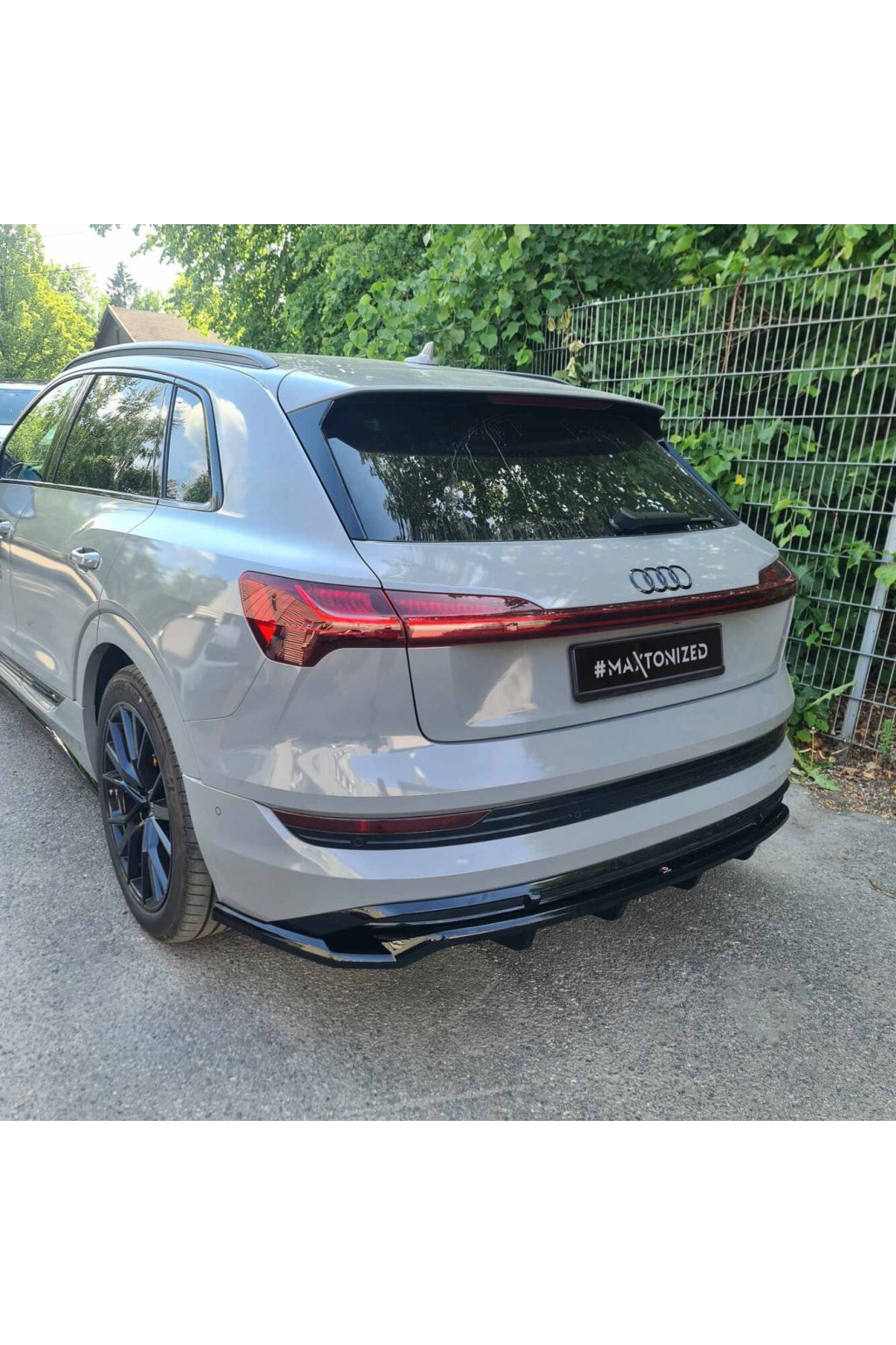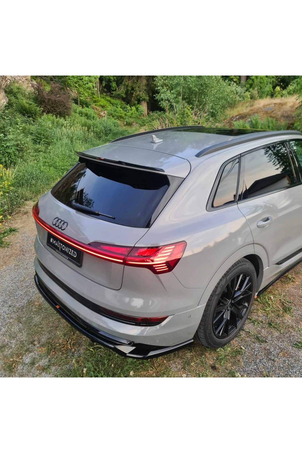Maxton Design prodloužení spoileru pro vozidlo Audi E-Tron S-Line . Povrchová úprava spoileru černý lesklý plast ABS.