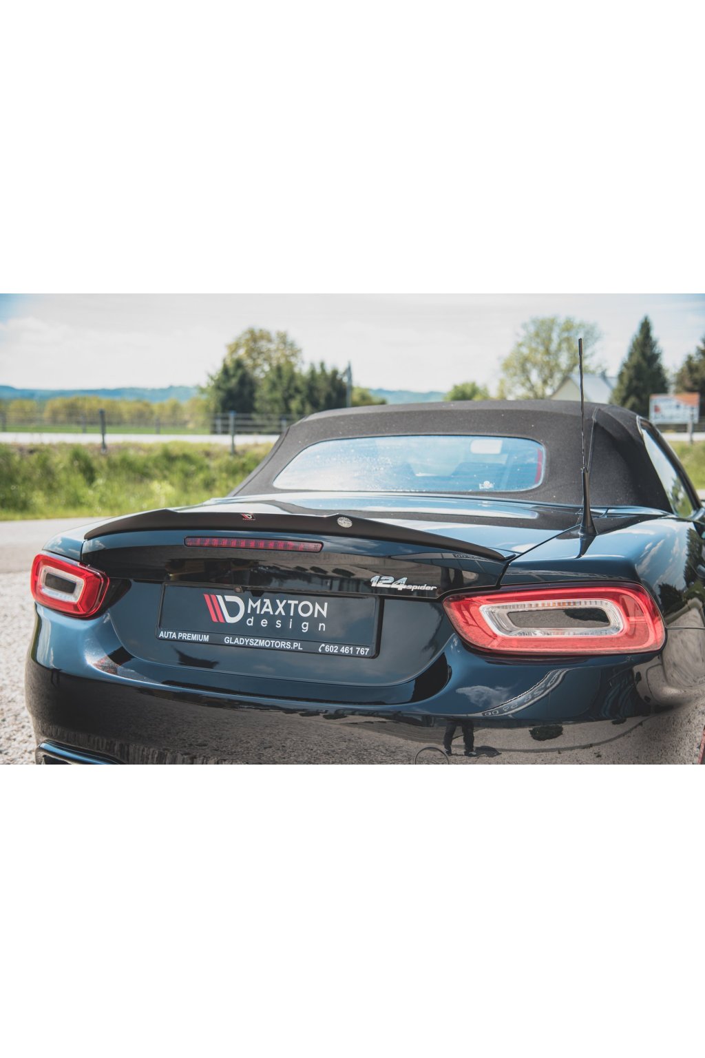 Maxton Design prodloužení spoileru pro vozidlo Fiat 124 Spider Abarth . Povrchová úprava spoileru carbon-Look.