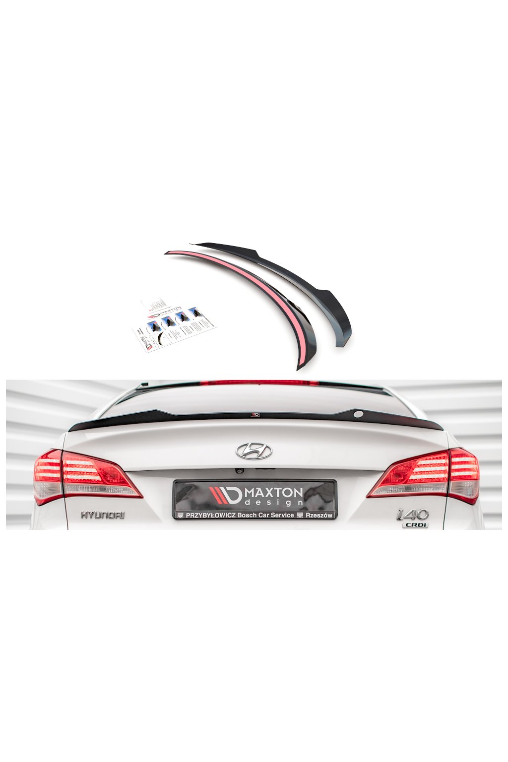 Maxton Design prodloužení spoileru pro vozidlo Hyundai i40 Mk1 . Povrchová úprava spoileru černý lesklý plast ABS.