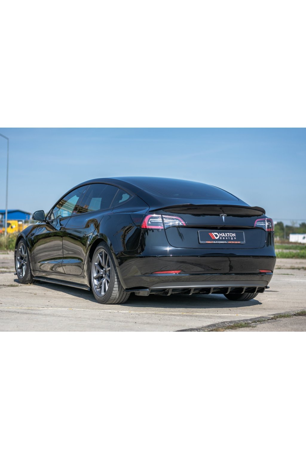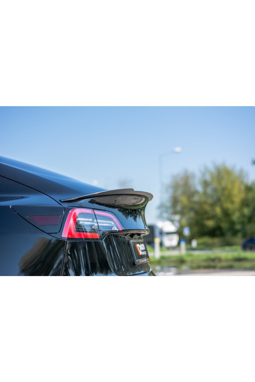 Maxton Design prodloužení spoileru pro vozidlo Tesla Model 3 Mk1 . Povrchová úprava spoileru černý lesklý plast ABS.