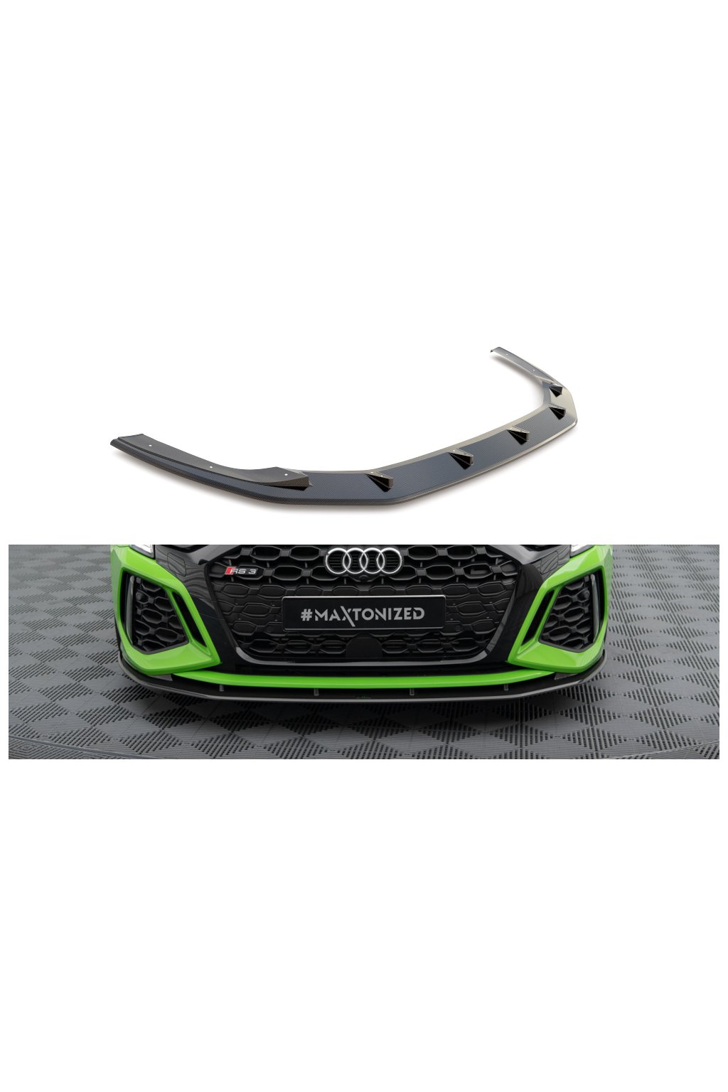 Maxton Design Carbon Division spoiler pod přední nárazník pro Audi RS3 8Y. Vyrobeno ze 100% Prepreg karbonu za použití těch nejmodernějších technologií a procesů zpracování karbonových vláken.