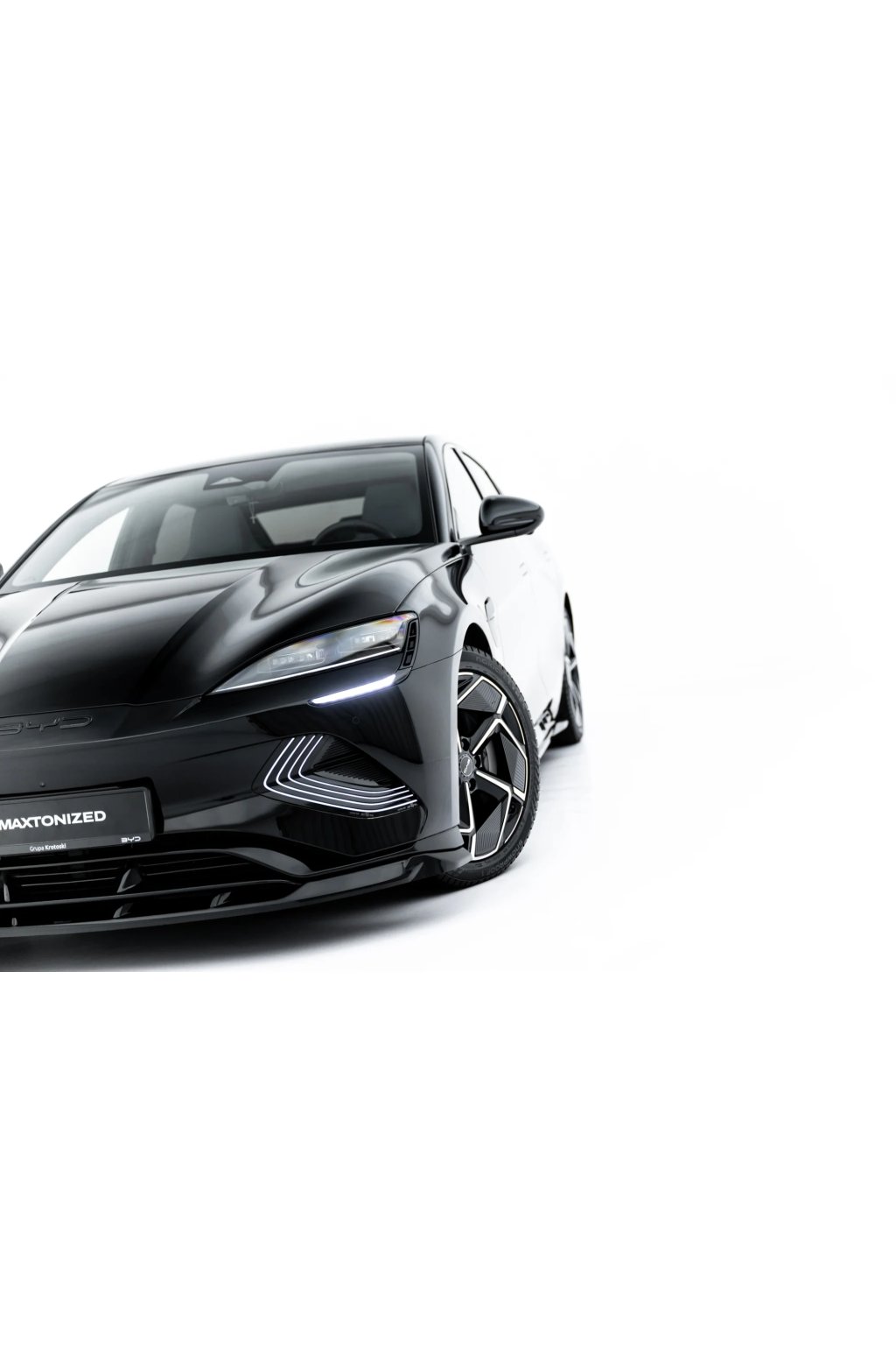 Maxton Design spoiler pod přední nárazník pro vozidlo BYD Seal Mk1 . Povrchová úprava spoileru černý lesklý plast ABS.