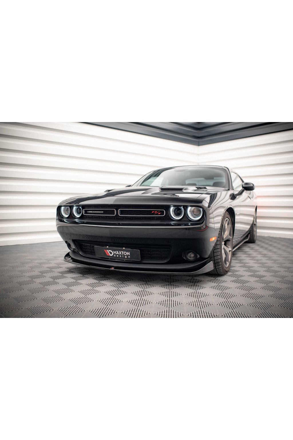 Maxton Design spoiler pod přední nárazník pro vozidlo Dodge Challenger Mk3 RT Facelift . Povrchová úprava spoileru černý lesklý plast ABS.