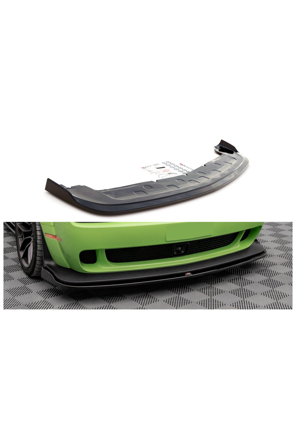 Maxton Design spoiler pod přední nárazník pro vozidlo Dodge Challenger MK3 SRT Hellcat Widebody . Povrchová úprava spoileru černý lesklý plast ABS.