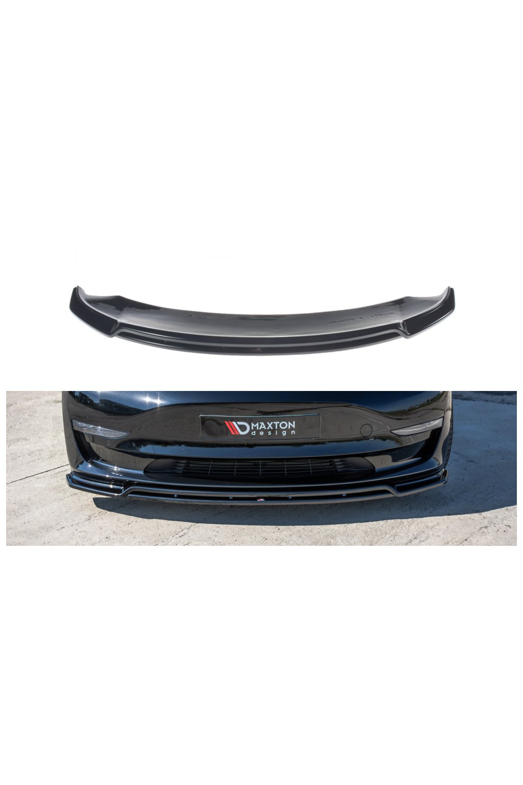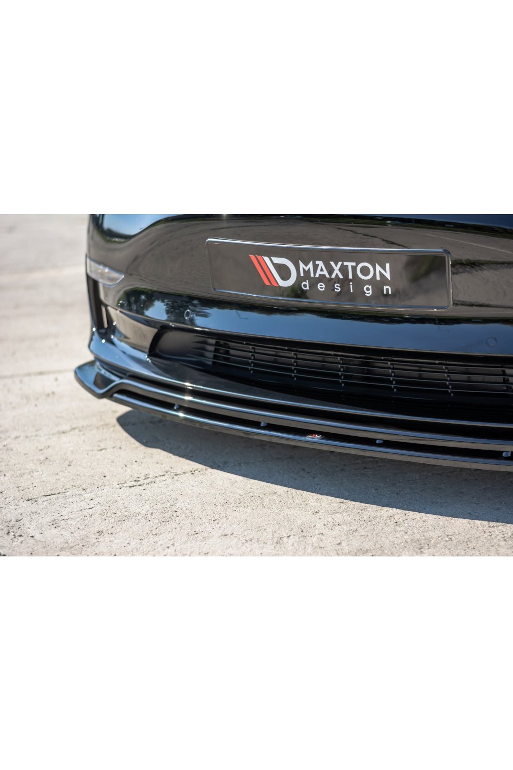 Maxton Design spoiler pod přední nárazník ver.2 pro vozidlo Tesla Model 3 Mk1 . Povrchová úprava spoileru černý lesklý plast ABS.