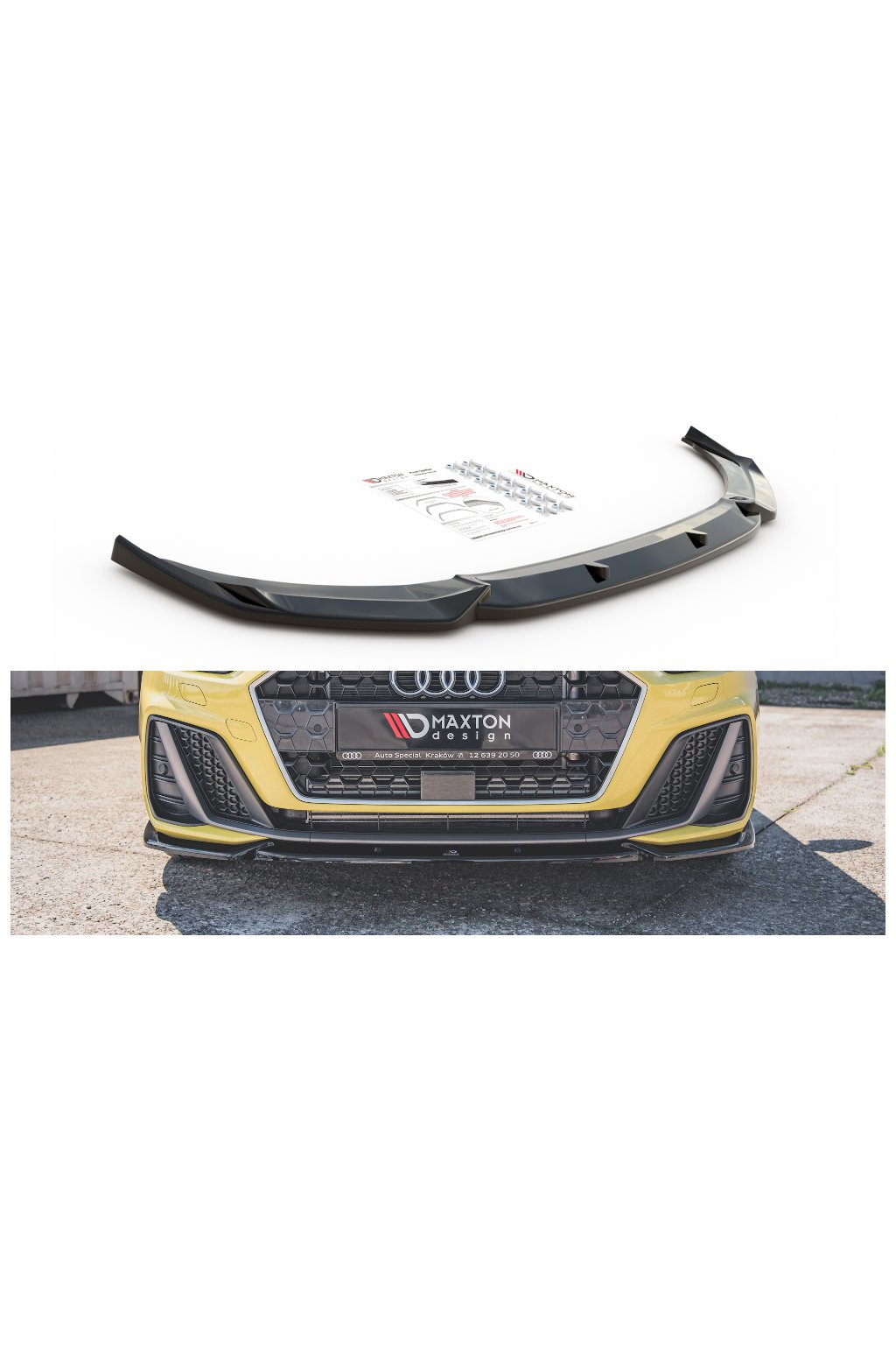 Maxton Design spoiler pod přední nárazník ver.3 pro vozidlo Audi A1 GB . Povrchová úprava spoileru černý lesklý plast ABS.