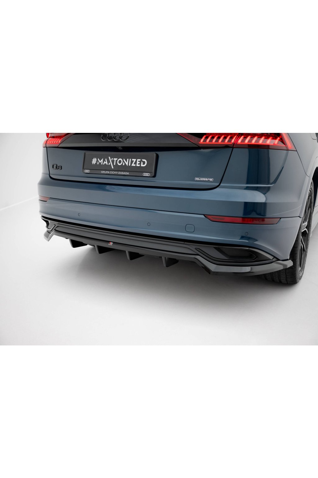 Maxton Design spoiler pod zadní nárazník s žebrováním pro vozidlo Audi Q8 Mk 1 . Povrchová úprava spoileru černý lesklý plast ABS.