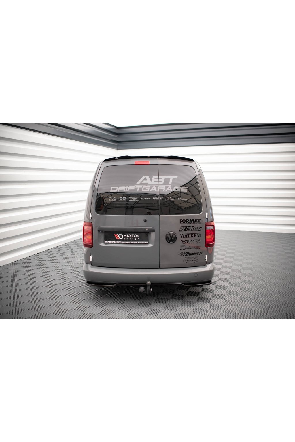 Maxton Design středový spoiler pod zadní nárazník pro Volkswagen Caddy Mk3 Facelift, černý lesklý plast ABS, pro verzi Long