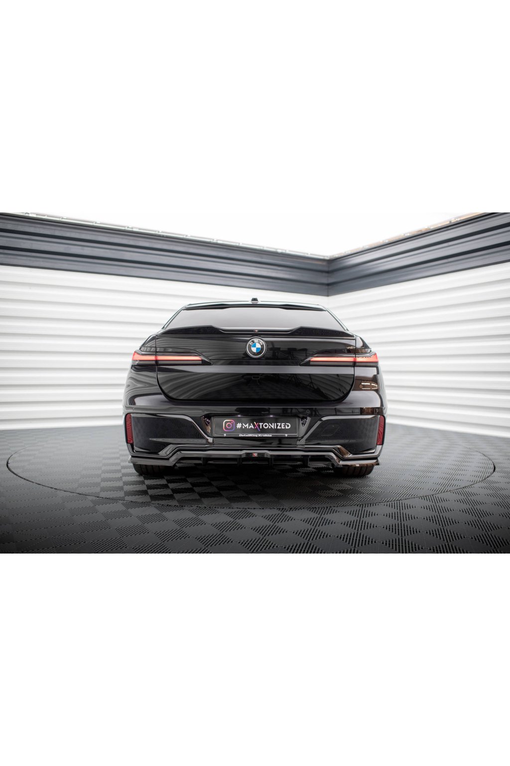 Maxton Design středový spoiler pod zadní nárazník s žebrováním pro BMW i7 G70 M-Pack, černý lesklý plast ABS, eDrive50 xDrive, xDrive60 xDrive