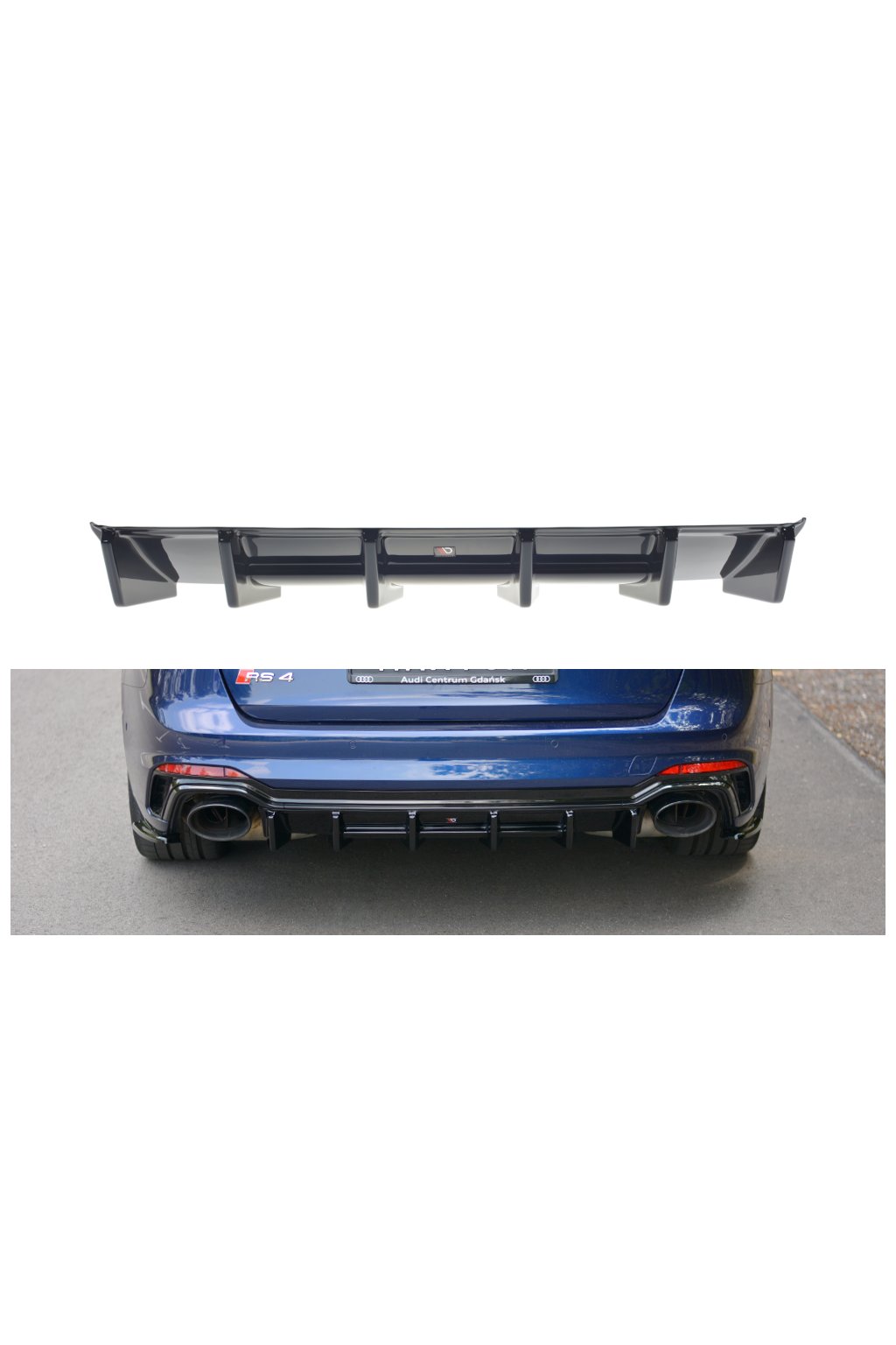 Maxton Design vložka zadního nárazníku pro vozidlo Audi RS4 B9, B9 FL . Povrchová úprava spoileru černý lesklý plast ABS.