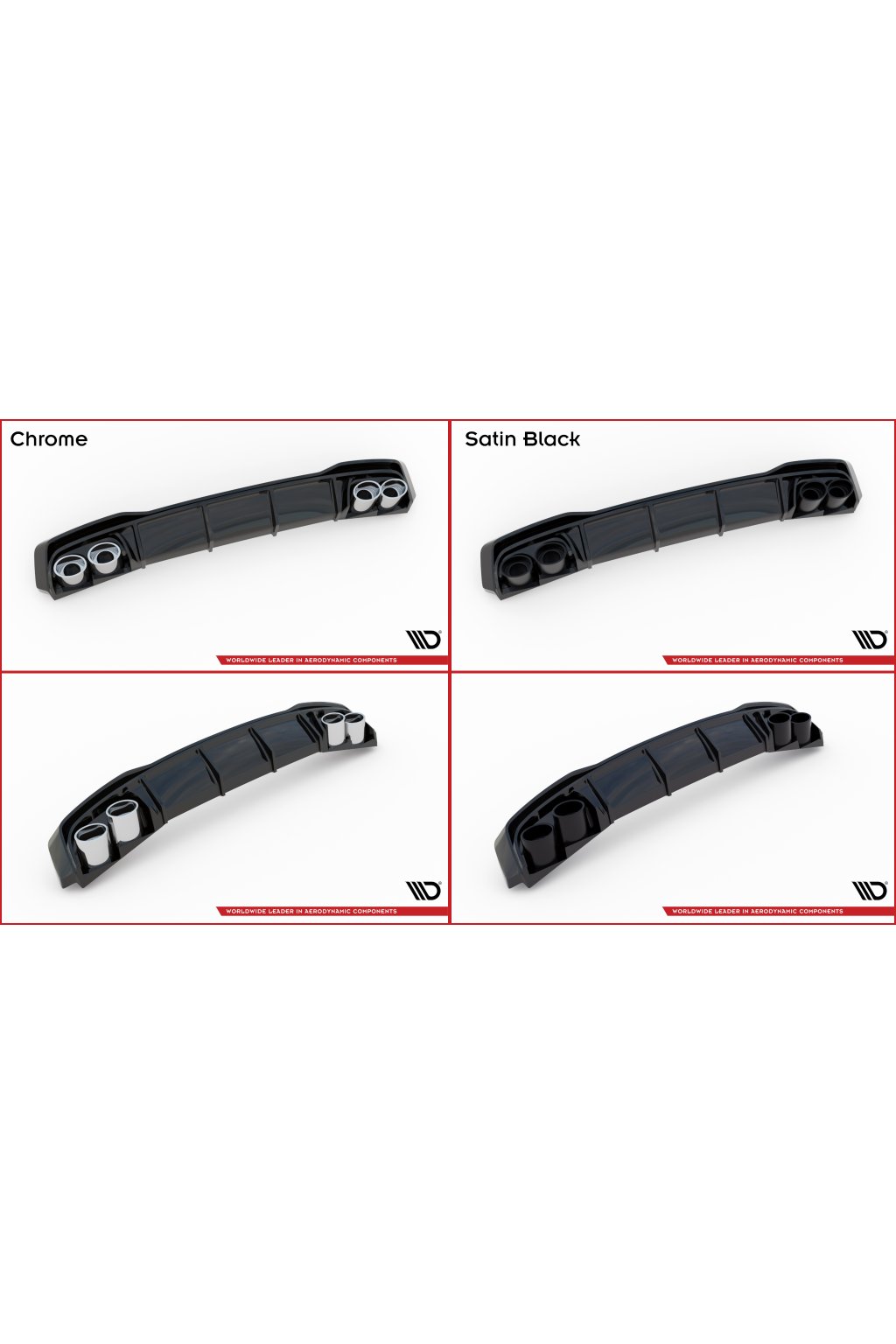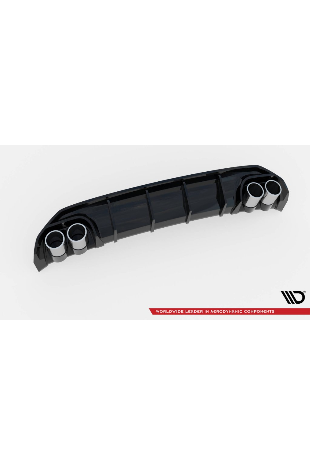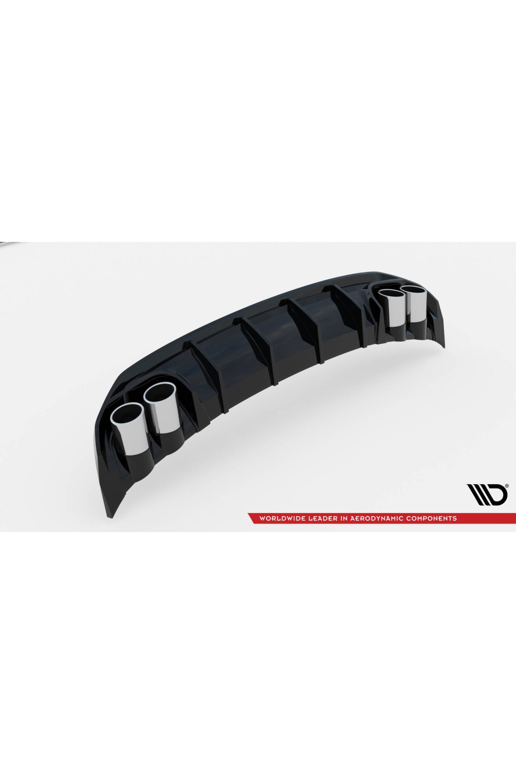 Maxton Design vložka zadního nárazníku s černými imitacemi koncovek výfuku pro vozidlo Audi A3 8Y . Povrchová úprava spoileru černý lesklý plast ABS.