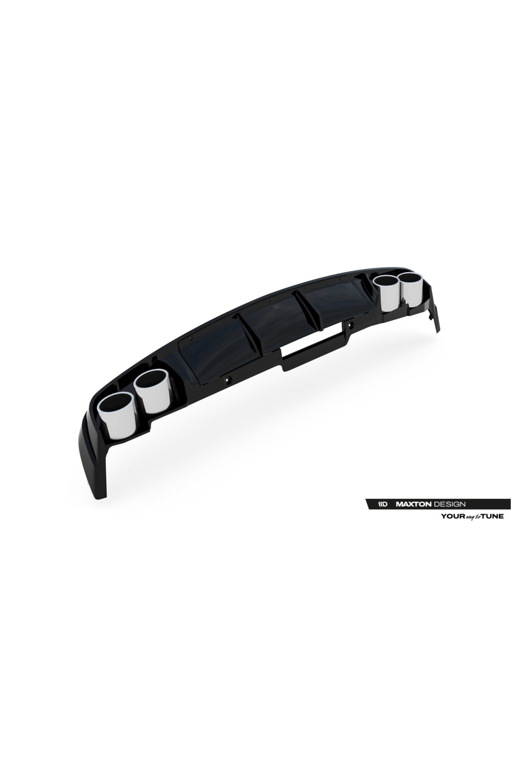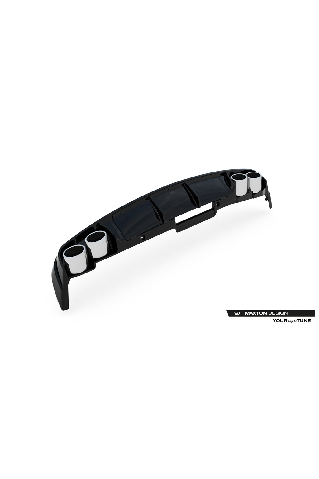 Maxton Design vložka zadního nárazníku s imitacemi koncovek výfuku pro vozidlo Audi A6 C8 . Povrchová úprava spoileru černý lesklý plast ABS.