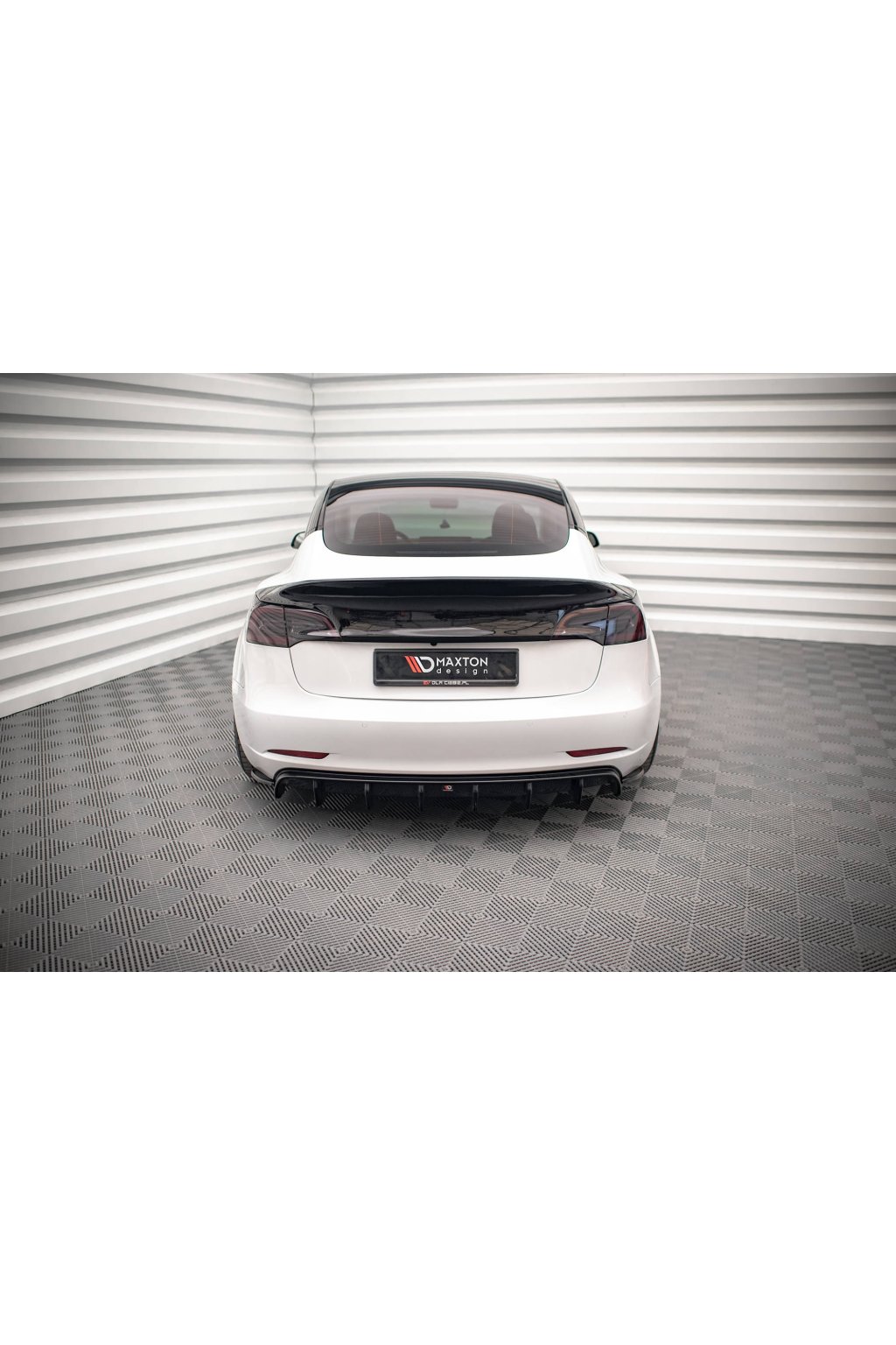 Maxton Design vložka zadního nárazníku ver.2 pro vozidlo Tesla Model 3 Mk1 . Povrchová úprava spoileru černý lesklý plast ABS.