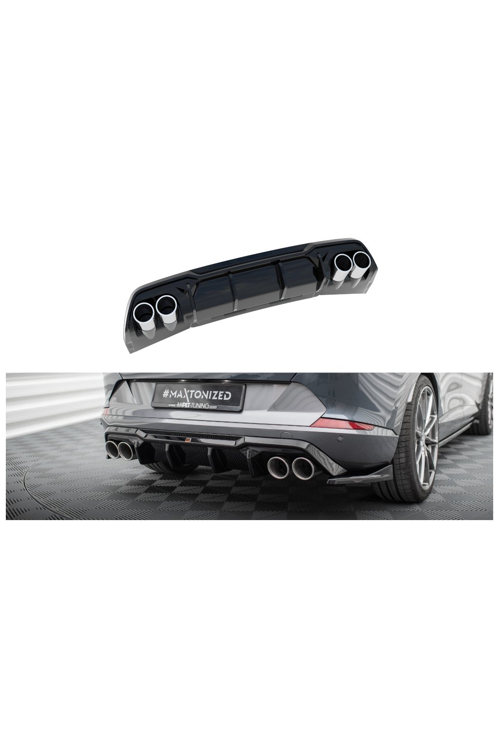Maxton Design vložka zadního nárazníku ver.3 s imitacemi koncovek výfuku pro vozidlo Cupra Formentor Mk1 . Povrchová úprava spoileru černý lesklý plast ABS.