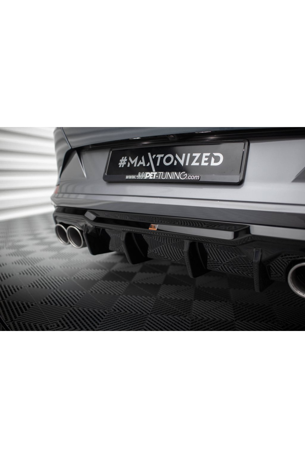 Maxton Design vložka zadního nárazníku ver.3 s imitacemi koncovek výfuku pro vozidlo Cupra Formentor . Povrchová úprava spoileru černý lesklý plast ABS.