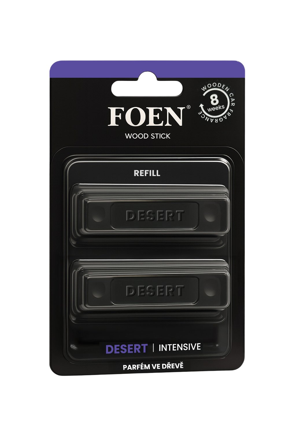 Objev exkluzivní vůni Desert – náhradní náplň do dřevěného difuzéru Foen Wood Stick, která přináší hlubokou, teplou a orientálně laděnou aromatickou atmosféru přímo do tvého vozu.
