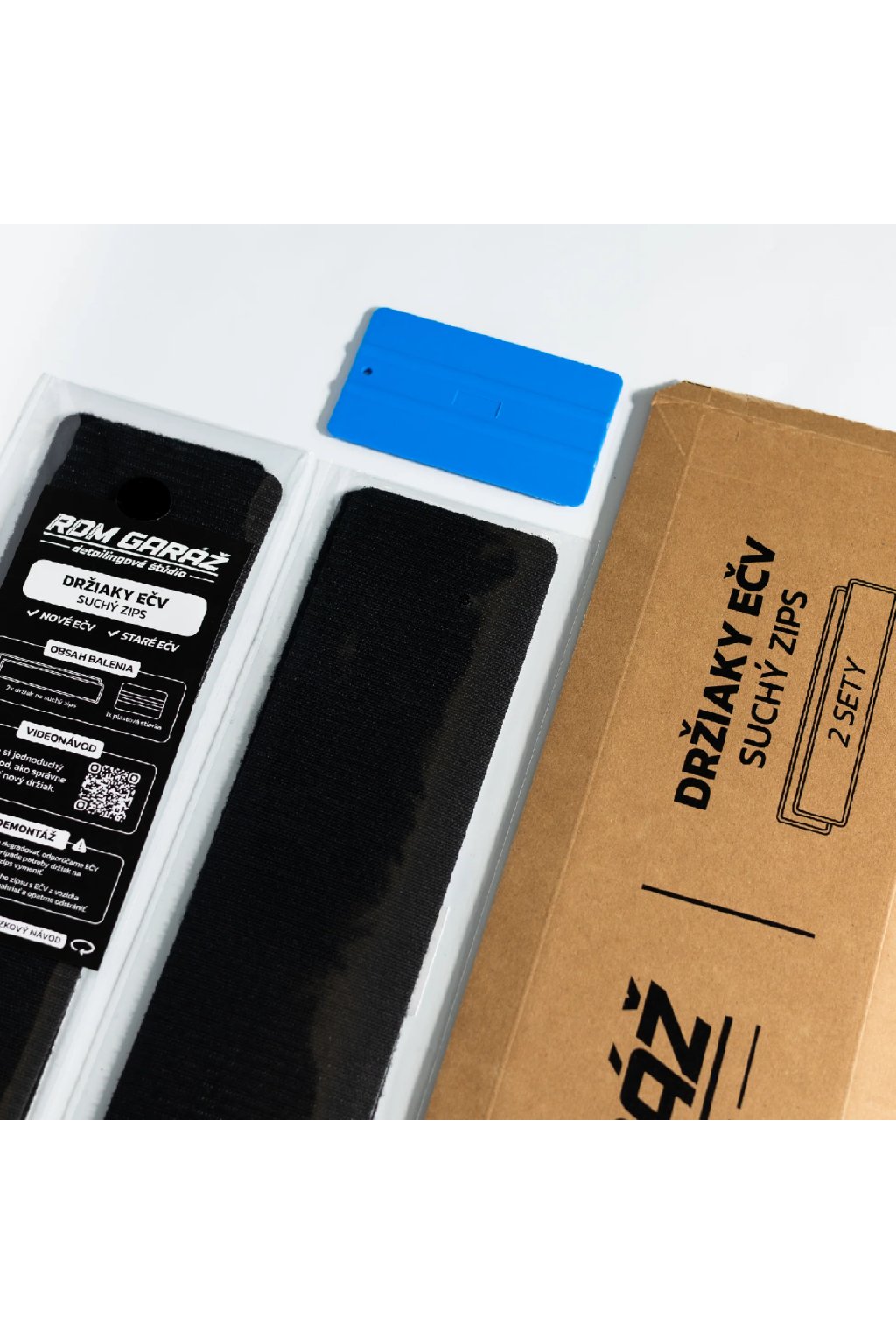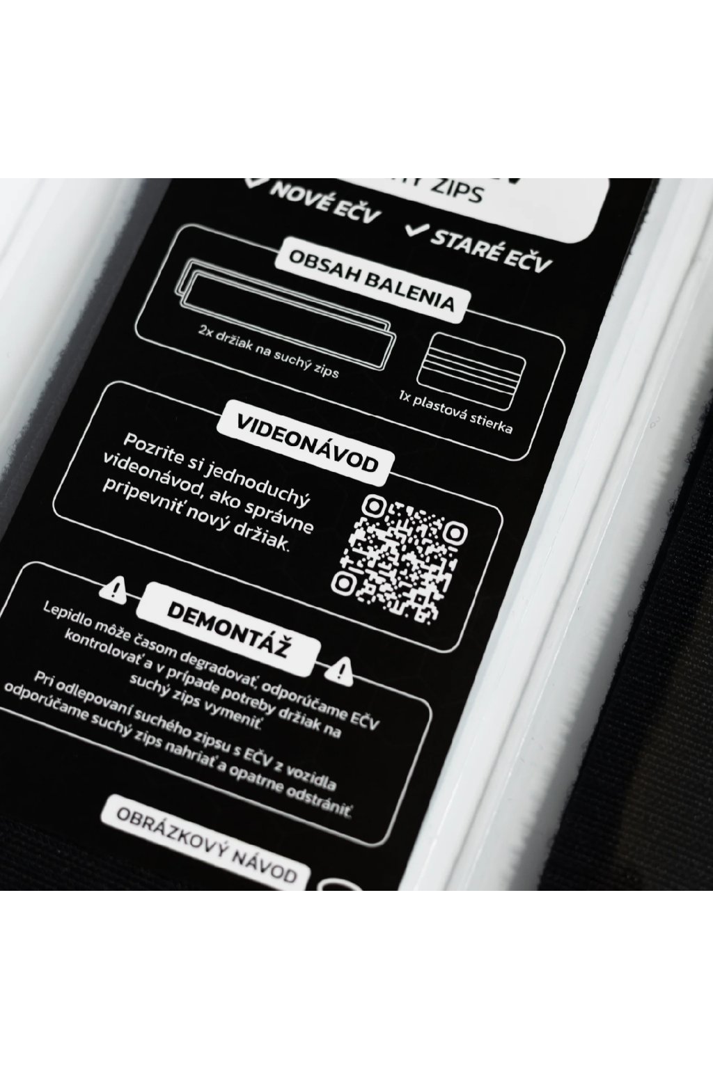 Povrch je nutné důkladně očistit a odmastit. Suchý zip lze jednoduše upravit na požadovanou velikost. Po správné aplikaci drží pevně i při běžném mytí vozu.