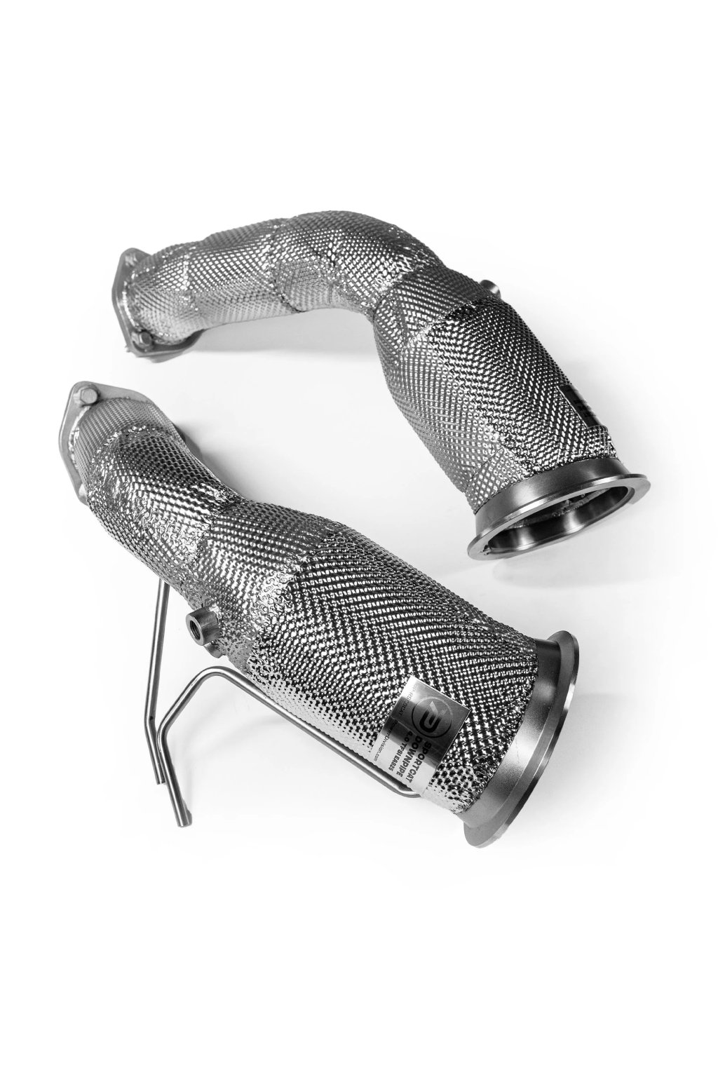 Downpipe z nerezové oceli pro Audi RS6/RS7 C8 zlepšují průtok výfukových plynů, odezvu plynu a zvuk motoru. Ručně vyrobené a izolované, nahrazují restriktivní katalyzátory, což vede k lepšímu výkonu a zvuku.
