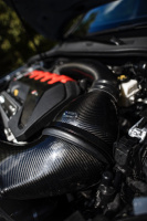 Použili jsme špičkové komponenty jako karbonové sání Eventuri pro maximální výkon, chladič vzduchu od DO88 pro optimální chlazení a úpravu řídící jednotky Stage 2 od RSRTuned. Zvukový projev je vylepšen díky downpipe od Milltek Sport se sportovním katalyzátorem bez OPF.