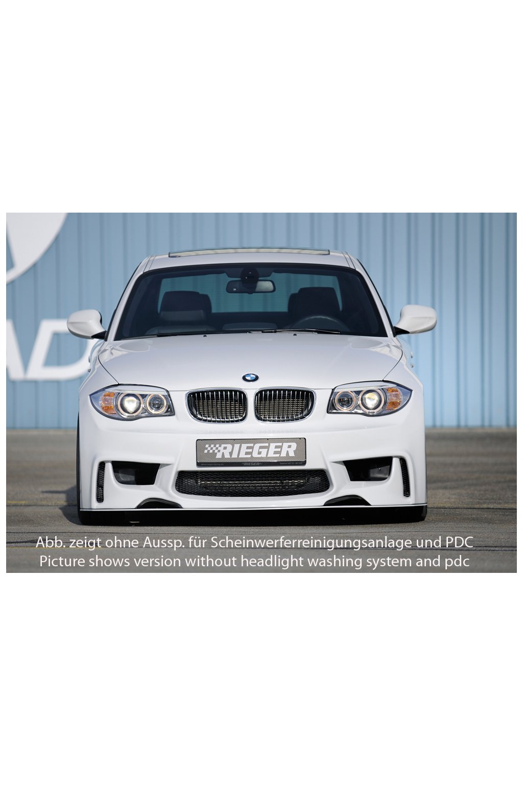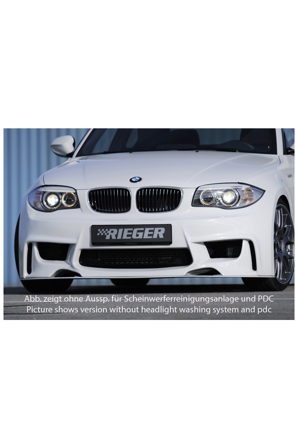 Rieger přední nárazník pro BMW řada 1 E81, E82, E88, E87 2-dvéř., 4-dvéř., kabriolet, kupé, sedan, plast ABS bez povrchové úpravy, pro vozy s parkovacím asistentem (PDC)