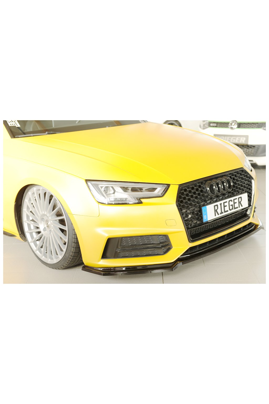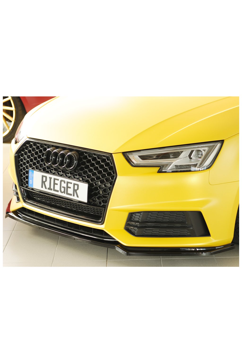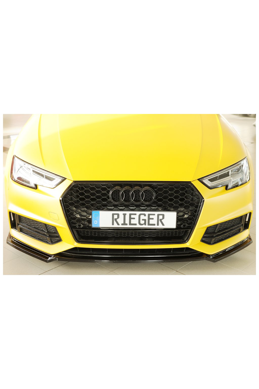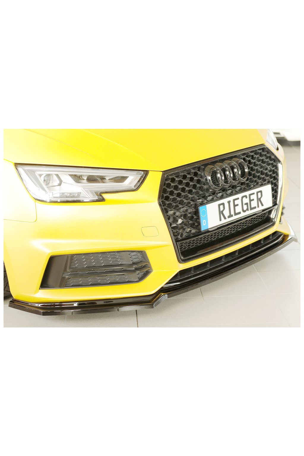 Rieger Tuning lipa pod přední nárazník pro Audi A4 S4 B9, F4 avant, 08/15-07/18, plast ABS lakovaný do černé lesklé barvy.