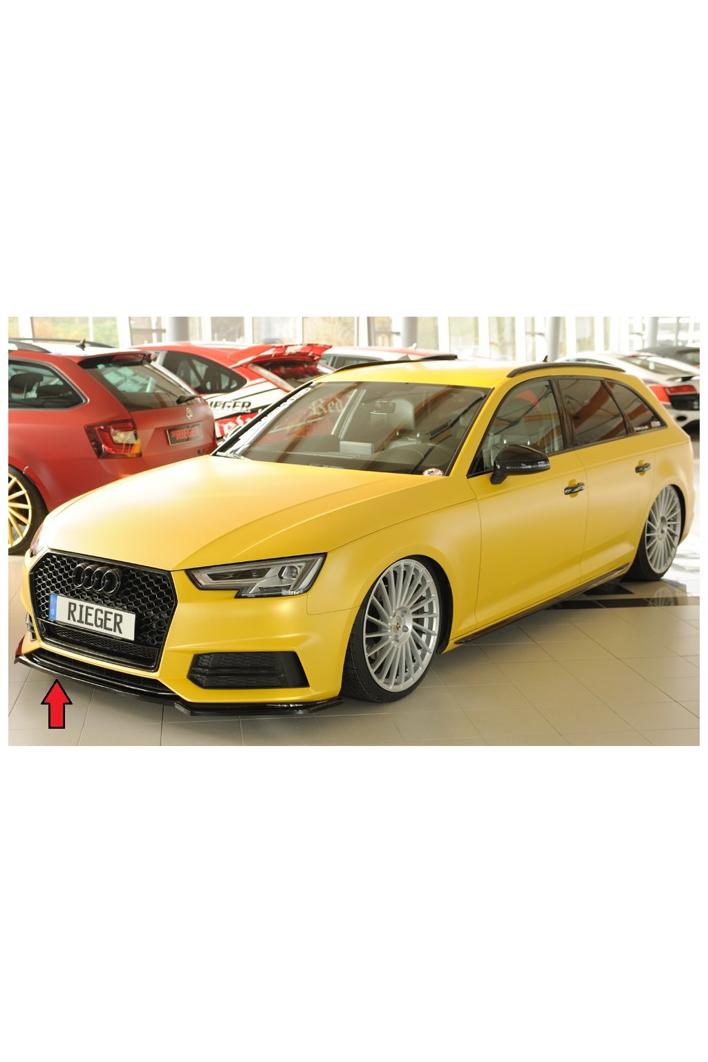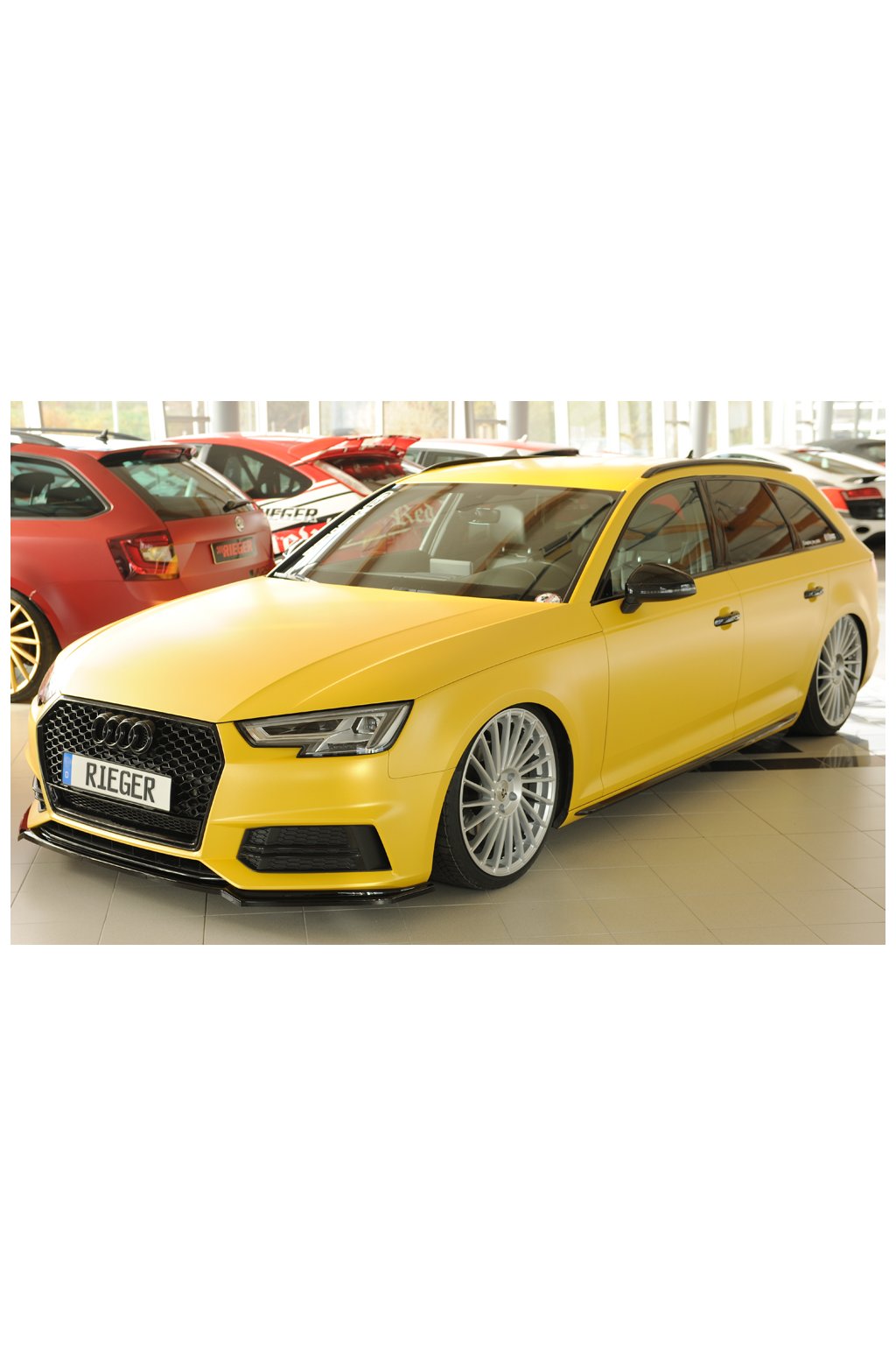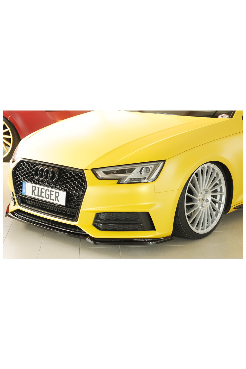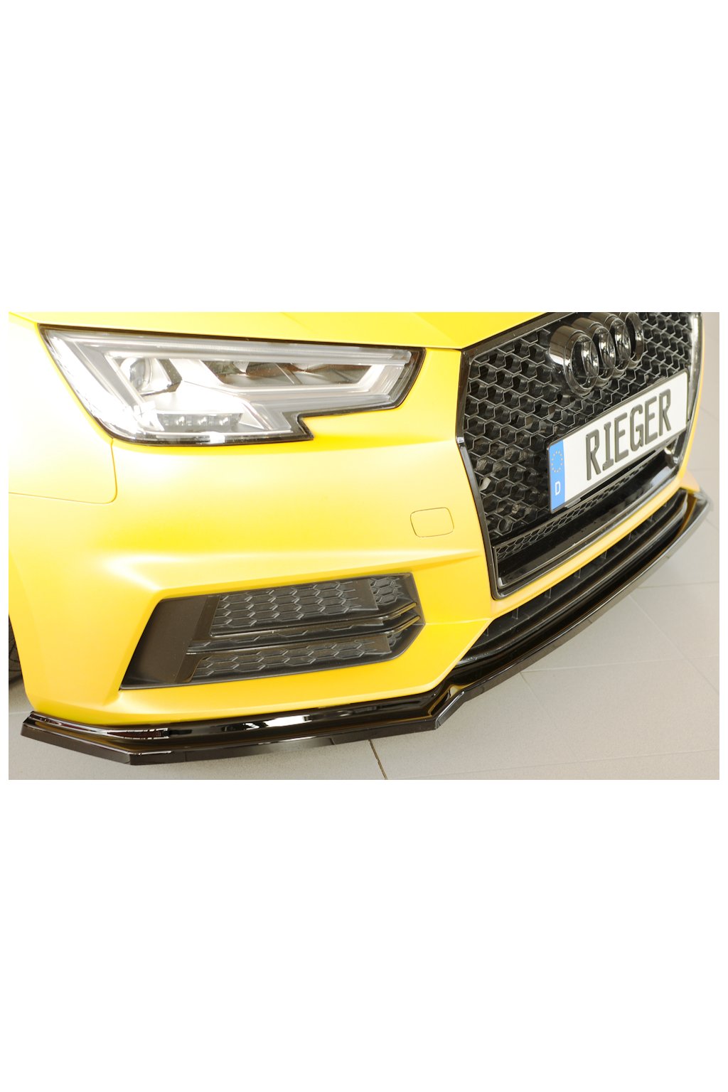 Rieger Tuning lipa pod přední nárazník pro Audi A4 S4 B9, F4 avant, 08/15-07/18, plast ABS lakovaný do černé lesklé barvy.