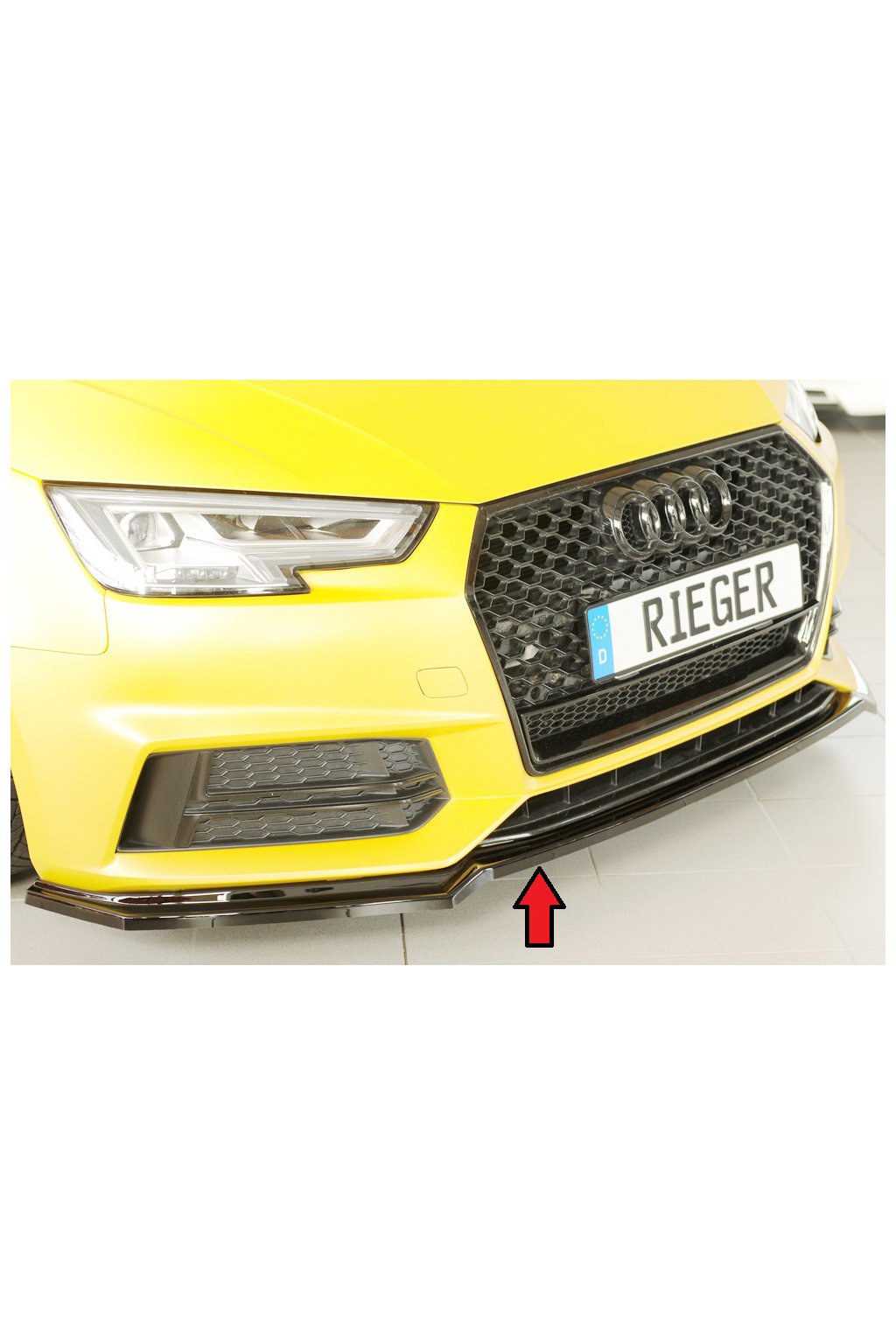 Rieger lipa pod přední nárazník pro Audi A4 S4 B9, F4 avant, 08/15-07/18, plast ABS lakovaný do černé lesklé barvy