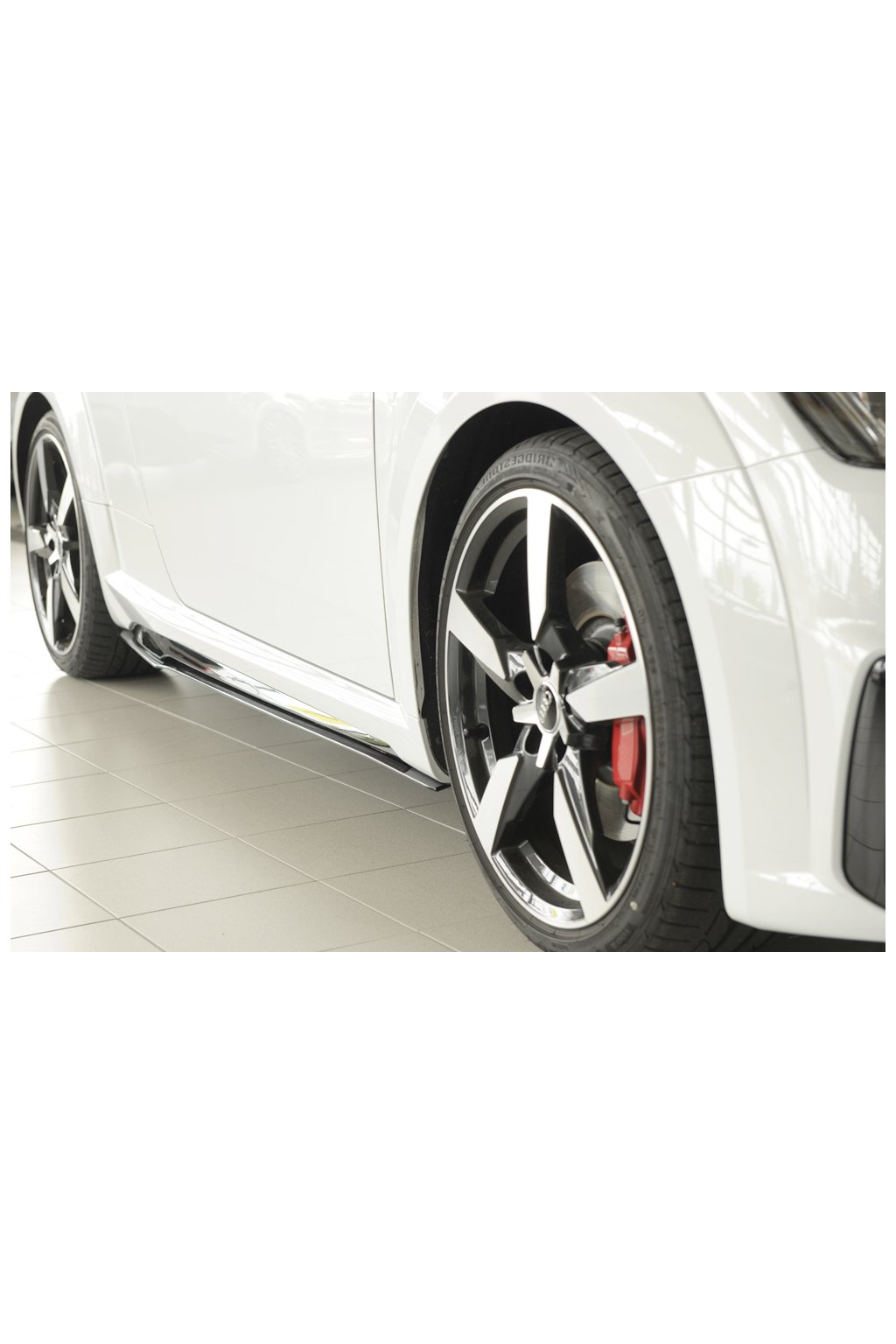 Boční práh Rieger Tuning určen k montáži na vozy Audi TT RS 8J, 8J1-FV, 8S kupé, roadster po faceliftu r.v. 09/18-. Je dodáván v provedení plast ABS bez povrchové úpravy, určeno k lakování.