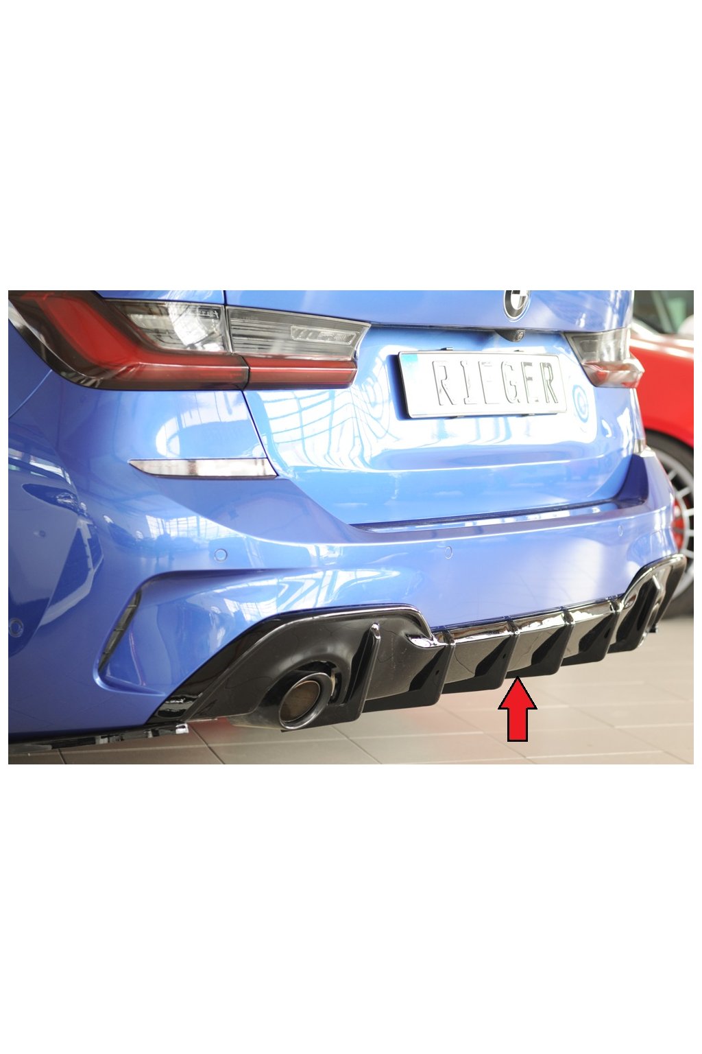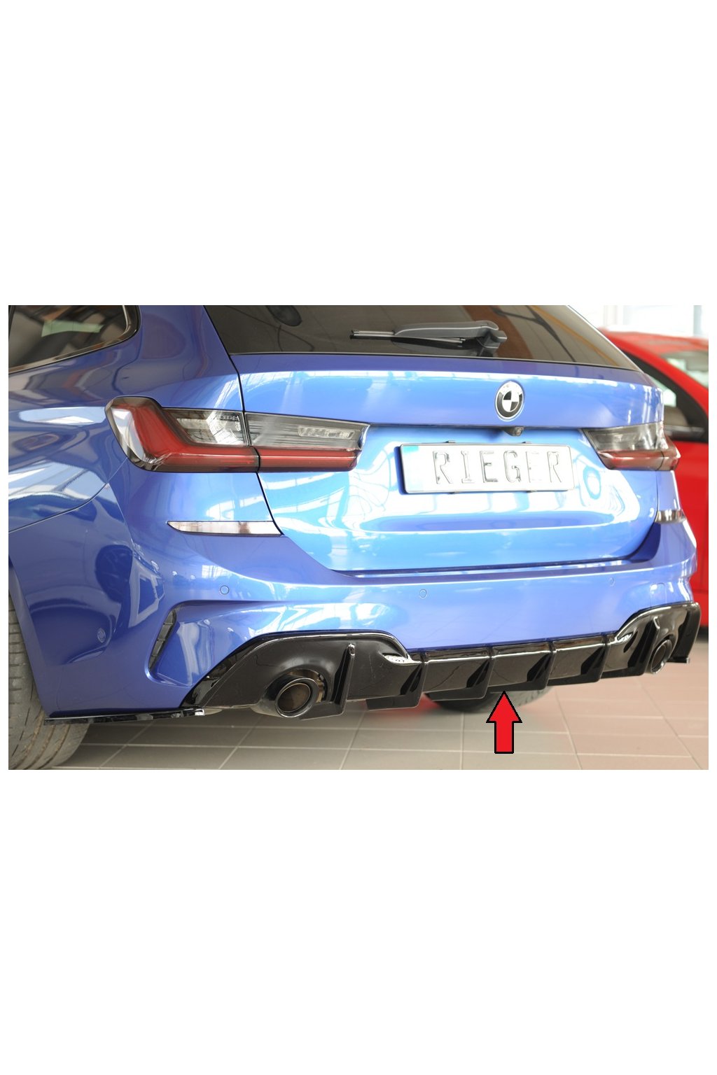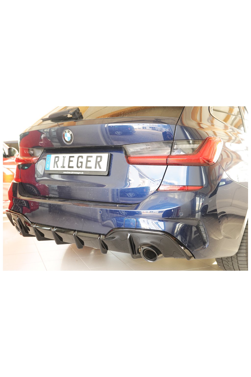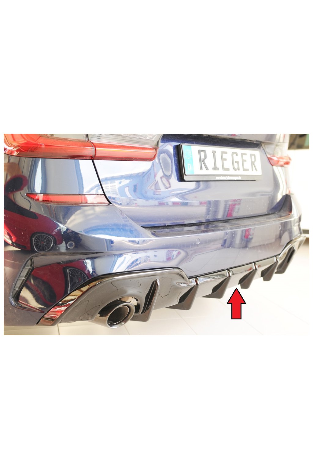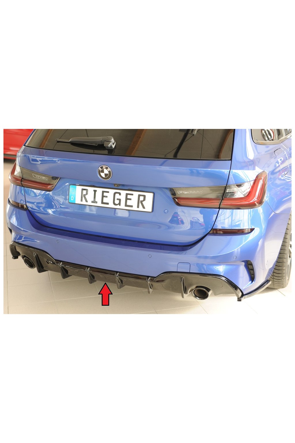 Rieger Tuning vložka zadního nárazníku (pro vozy s tažným zařízením) pro vozy BMW řada 3 G21 touring, 03/19-. Provedení v černém lesklém laku bez nutnosti dalšího lakování.