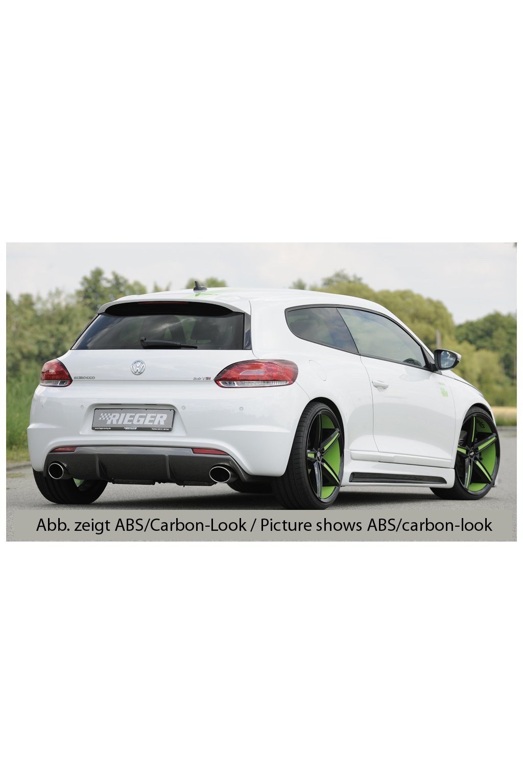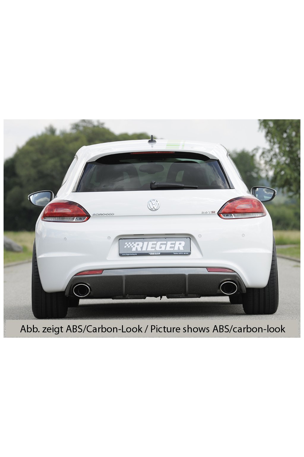 Rieger Tuning vložka zadního nárazníku pro R-Line zadní nárazník pro vozy Volkswagen Scirocco R 13 2-dvéř. vč. faceliftu, 05/14-, 11/09-04/14. Provedení v černém lesklém laku bez nutnosti dalšího lakování.