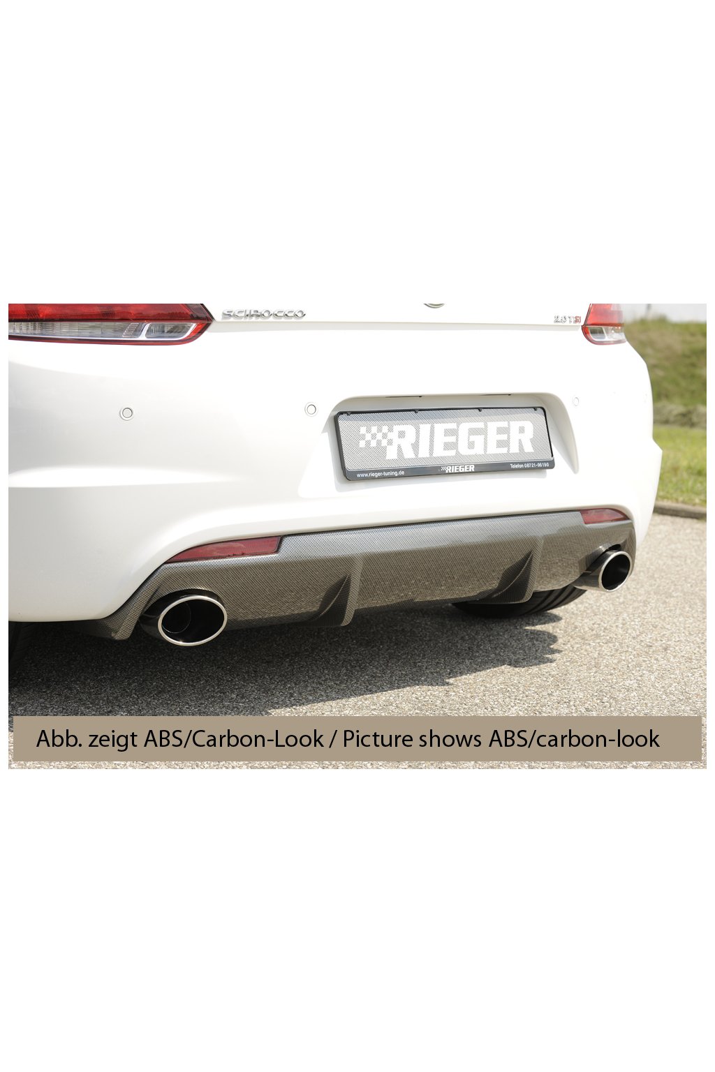 Rieger vložka zadního nárazníku pro R-Line zadní nárazník pro Volkswagen Scirocco R 13 2-dvéř. vč. faceliftu, plast ABS lakovaný do černé lesklé barvy, pro sportovní koncovky na obou stranách 126x94 mm