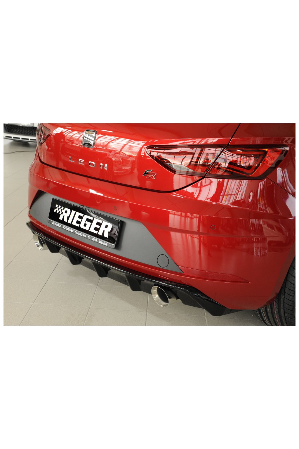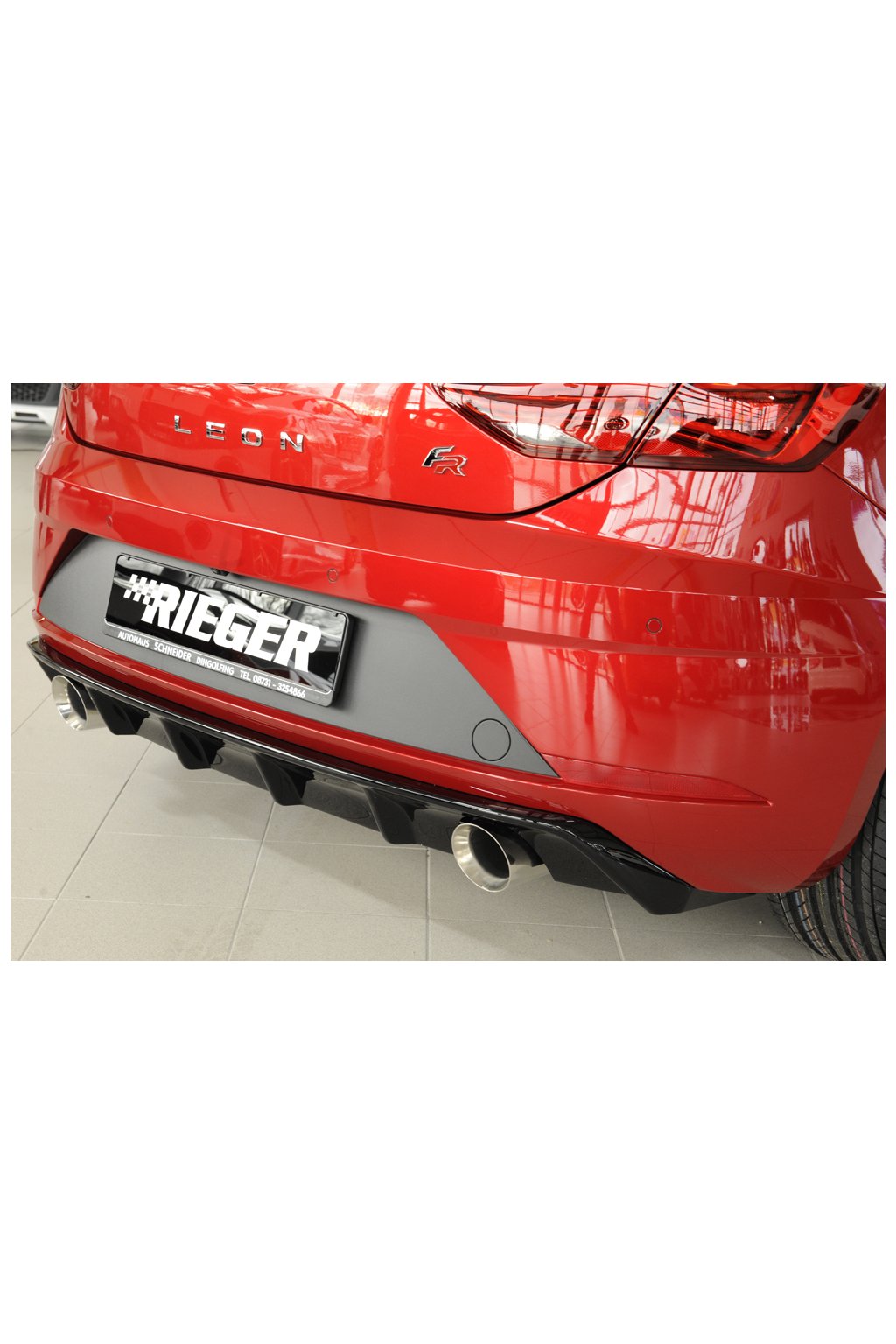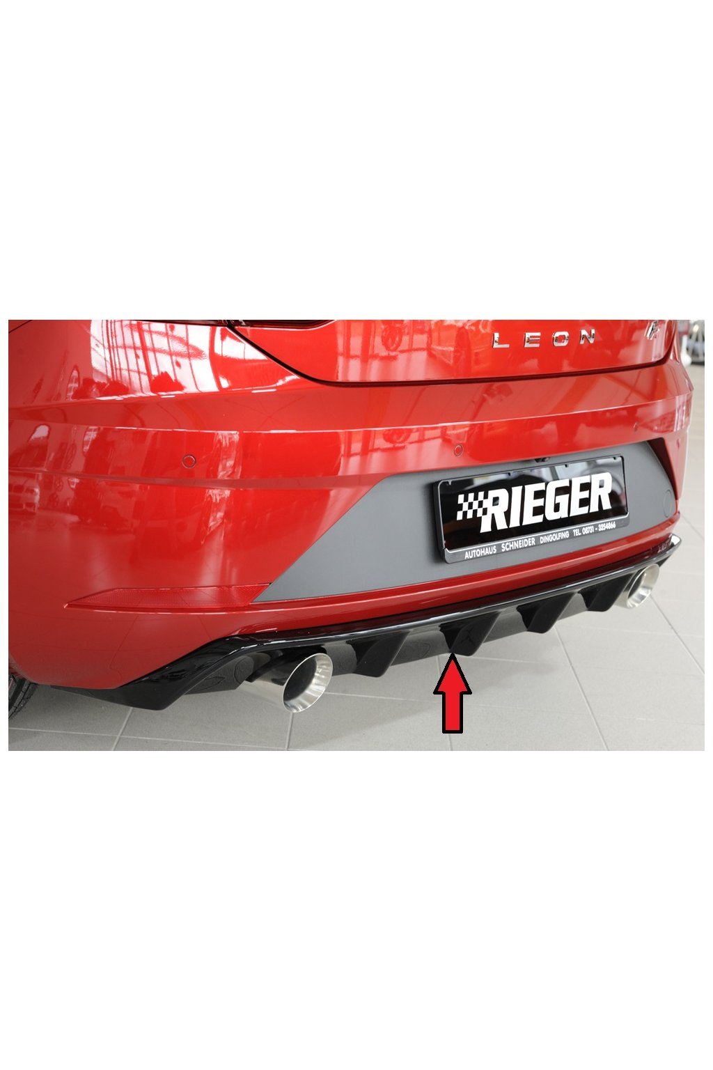 Rieger Tuning vložka zadního nárazníku pro vozy Seat Leon FR 5F 3-dvéř. (sc), 5-dvéř. po faceliftu, 01/17-. Provedení v černém lesklém laku bez nutnosti dalšího lakování.