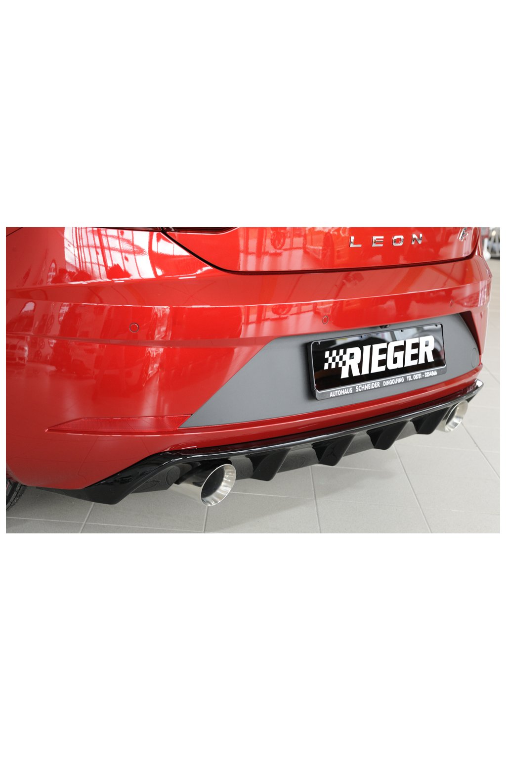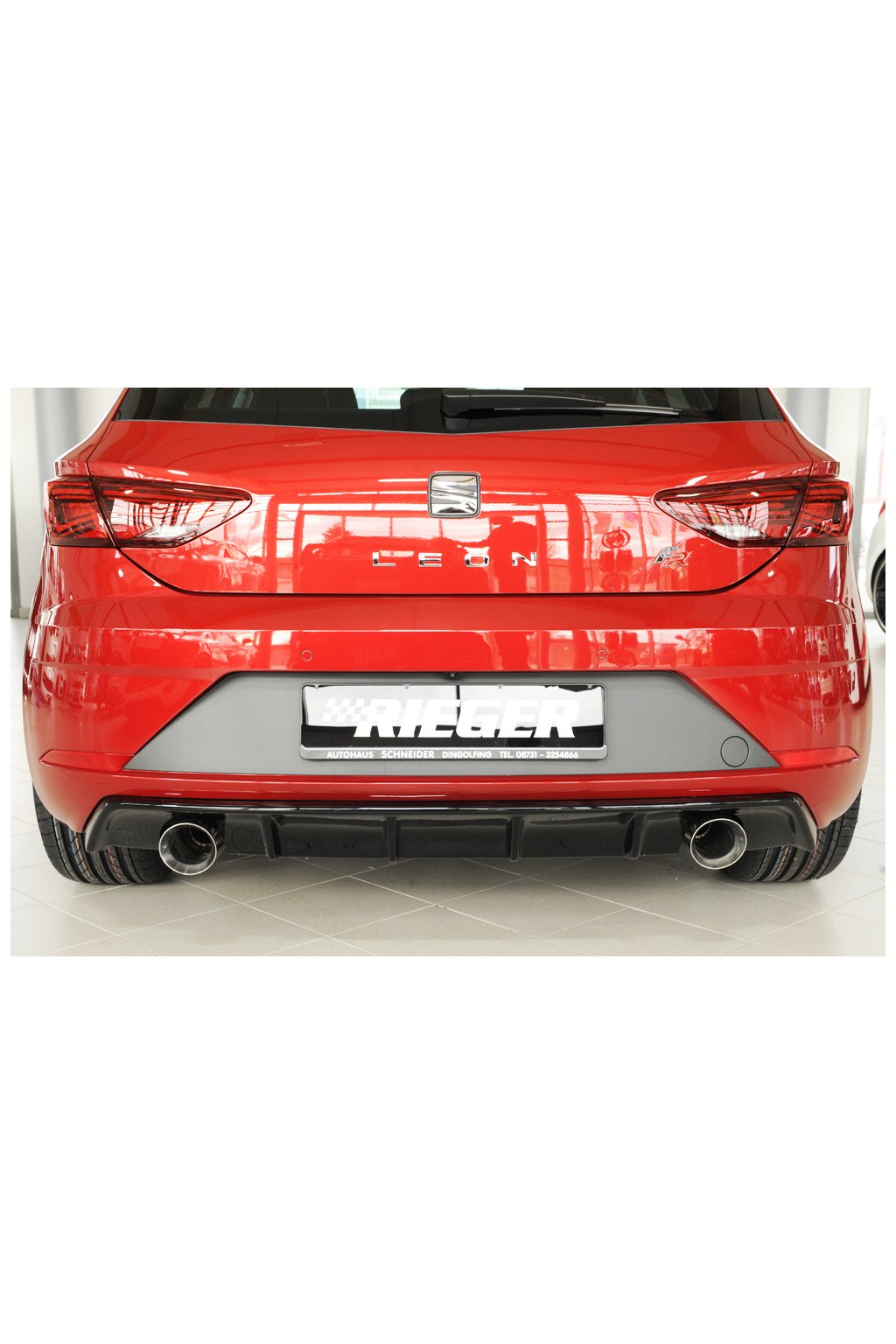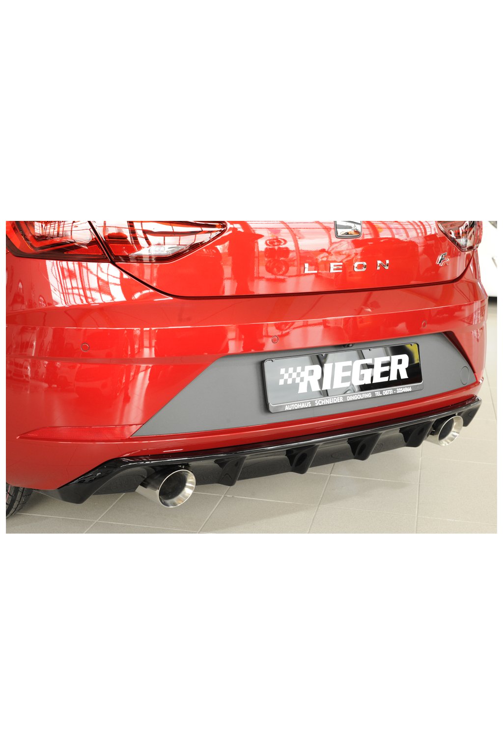 Rieger Tuning vložka zadního nárazníku pro vozy Seat Leon FR 5F 3-dvéř. (sc), 5-dvéř. po faceliftu, 01/17-. Provedení v černém lesklém laku bez nutnosti dalšího lakování.