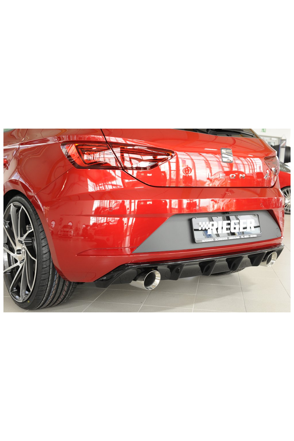 Rieger vložka zadního nárazníku pro Seat Leon FR 5F 3-dvéř. (sc), 5-dvéř. po faceliftu, plast ABS lakovaný do černé lesklé barvy, pro sportovní koncovky na obou stranách 100 mm