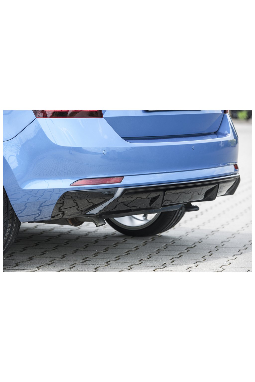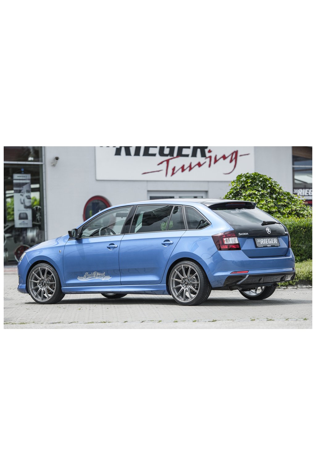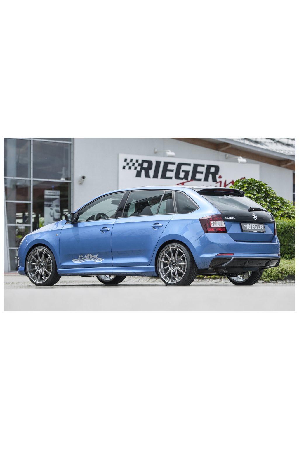 Rieger Tuning vložka zadního nárazníku pro vozy Škoda Rapid NH spaceback vč. faceliftu, 05/17-, 07/12-04/17. Provedení v černém lesklém laku bez nutnosti dalšího lakování.
