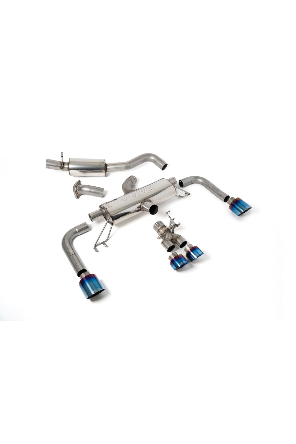 76.2mm / 3' Resonated Secondary Cat Back with Burnt / Blue Titanium GT Tips - Re-uses OE Valve Controls & No Cutting of the OE System Required